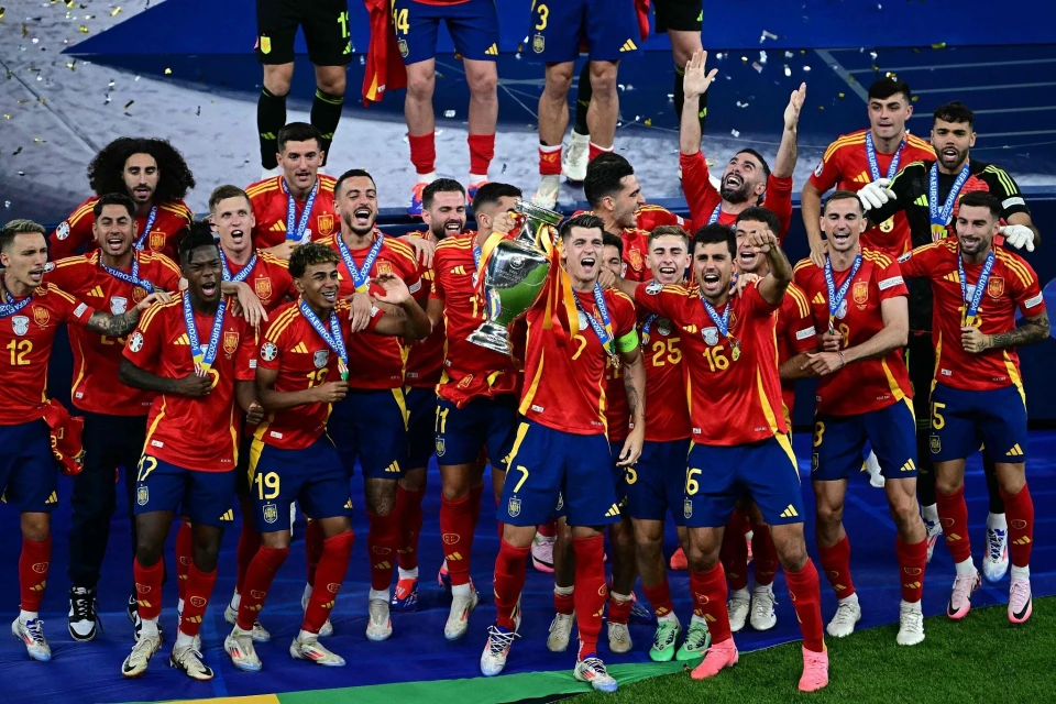 المنتخب الإسباني لكرة القدم للرجال (بالإنجليزية: Spain National Football Team) يمثل إسبانيا في المسابقات الدولية لكرة القدم للرجال، ويتابع الاتحاد الملكي الإسباني لكرة القدم.![]() تأسس الاتحاد الإسباني لكرة القدم عام 1909. عام 1920، أنشأ الاتحاد الإسباني لكرة القدم أول منتخب وطني. عام 1934، شاركت إسبانيا في كأس العالم لأول مرة. في كأس العالم البرازيل 1950، احتل إسبانيا المرتبة الرابعة. في نهائي بطولة أوروبا 1964، هزمت إسبانيا الاتحاد السوفييتي 2-1 لتحصد أول троفي كبير في تاريخها. بعد فوزها ببطولة أوروبا، انخفضت إسبانيا إلى ذروة ضعف ولم تتمكن من فوز أي لقب عالمي أو قاري لمدة 44 عامًا. في بطولة أوروبا 2008، هزمت إسبانيا ألمانيا 1-0 في النهائي لتحصد أول لقب كبير لها منذ 44 عامًا. ![]() في كأس العالم 2010، خسرت إسبانيا 0-1 ل سويسرا في مبارتها الأولى، ثم هزمت هندوراس 2-0 وتشيلي 2-1 لتصعد من المجموعة. في المرحلة الفرزية، هزمت إسبانيا البرتغال والباراغواي 1-0 كلًا على حدة. في النصف النهائي، هزمت إسبانيا ألمانيا 1-0. في النهائي، هزمت إسبانيا هولندا 1-0 بهدف أندريس إينيستا في الوقت الإضافي، لتحصد كأس العالم لأول مرة. في بطولة أوروبا 2012، صعدت إسبانيا كرابطة أولى المجموعة وهزمت إيطاليا 4-0 لتحافظ على لقب بطولة أوروبا بنجاح. في كأس العالم البرازيل 2014، عانت إسبانيا هزيمة ثقيلة وتم إخراجها من المرحلة المجمعية. была إسبانيا مقطعة في الدور الست عشرة من بطولة أوروبا فرنسا 2016 وكأس العالم روسيا 2018. في بطولة أوروبا لكرة القدم 2020، وصلت إسبانيا إلى النصف النهائي. في كأس العالم قطر 2022، تم إخراج إسبانيا في الدور الست عشرة. في يونيو 2023، هزمت إسبانيا كرواتيا لتحصد لقب لیگ الدول الأوروبية 2022-23. في 10 يوليو 2024، في نصف نهائي بطولة أوروبا لكرة القدم 2024، هزمت إسبانيا فرنسا 2-1. في 15 يوليو 2024، هزمت إسبانيا إنجلترا 2-1 لتحصد لقب بطولة أوروبا الرابع. |