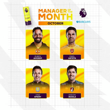 অক্টোবর মাসের প্রিমিয়ার লিগ ম্যানেজার অফ দ্য মান্থ মনোনয়ন: অ্যামোরিম, আর্তেতা, ইলাইক্স মোরিবা, এমেরি