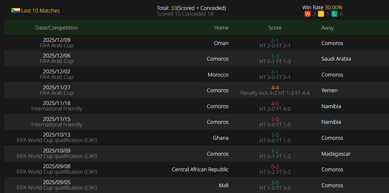 Comoros Team News